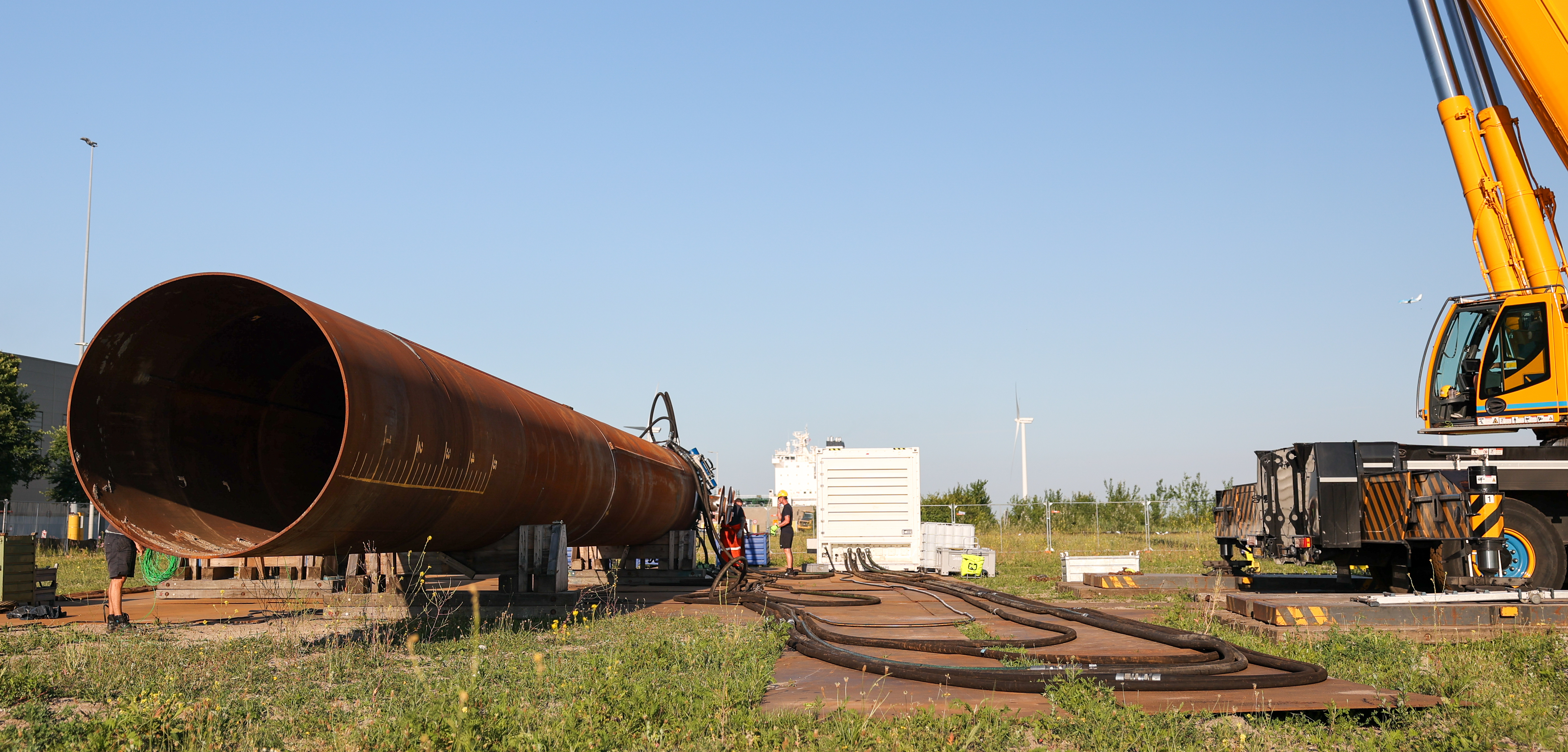 The GDP 2.0 project has taken a next step in testing its innovative monopile installation method. At the Ruijgoord site – well known from the earlier SIMOX project – the team tested the technology with a 2.2 m diameter, 26 m long monopile. This large-scale field test is crucial on the path to upscaling the technology for offshore applications.